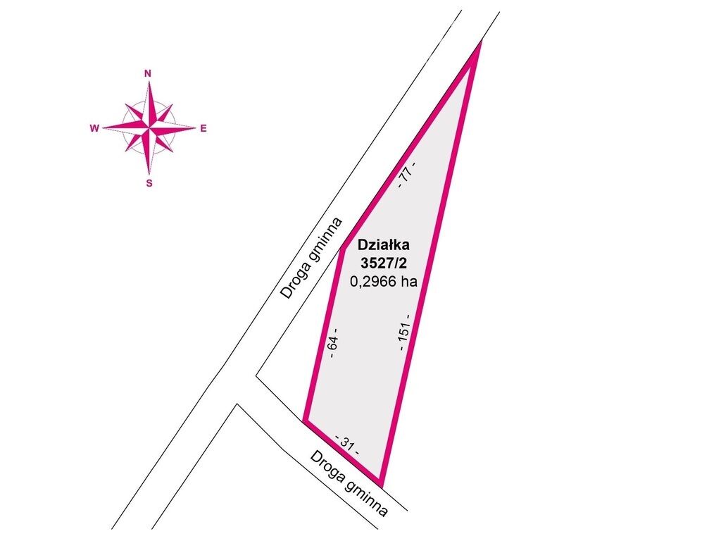 Działka nr 3527/2 o powierzchni 0,2966 ha (29,66 ar) położona jest